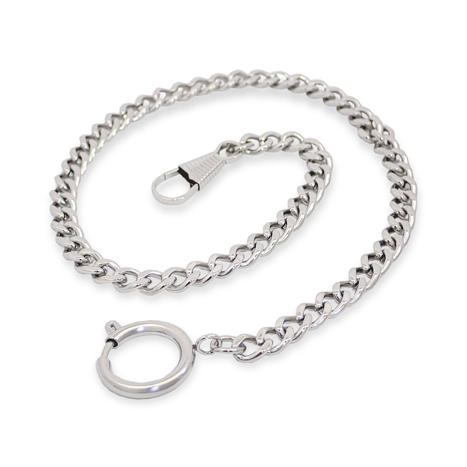 Krom lommeur skeleton med mekanisk opptrekk, liten sekundviser og stål klokkekjede.
