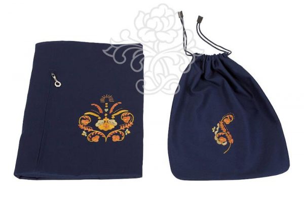 Håndbrodert oppbevaringspose med 2 store lommer med glidelås og separat skopose til Vestfoldbunad.